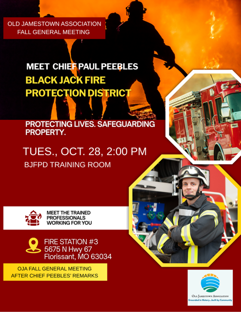 Meet Chief Paul Peebles, Black Jack fire protection district. followed by OJA Fall General Meeting.